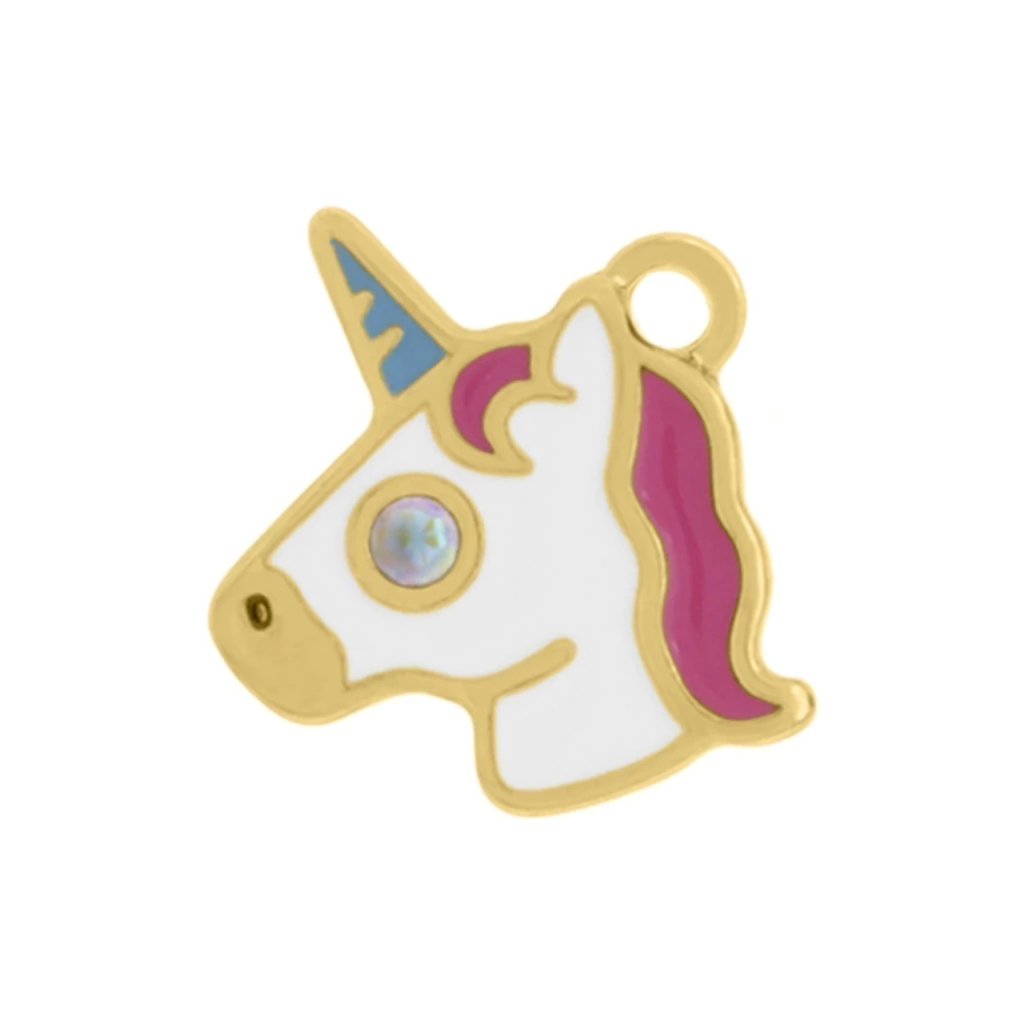 Pingente Unicórnio com Strass e Resinado Rosa