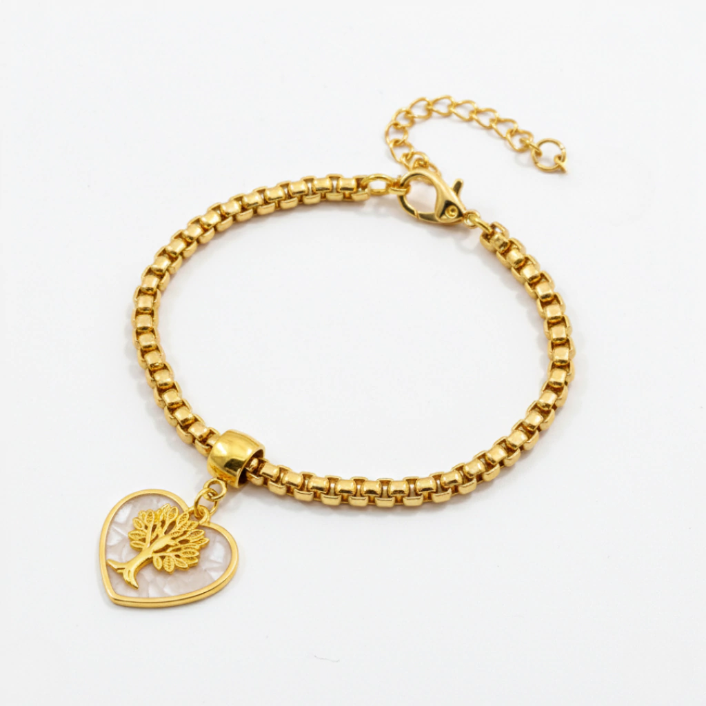 Descubra a Pulseira Árvore da Vida no Coração Banhada, um acessório que simboliza a vitalidade e a força que existe dentro de você. Com um design que representa a capacidade de vencer desafios, essa pulseira é perfeita para compor aquele LOOK único que não vai deixar você passar despercebida em nenhum momento.